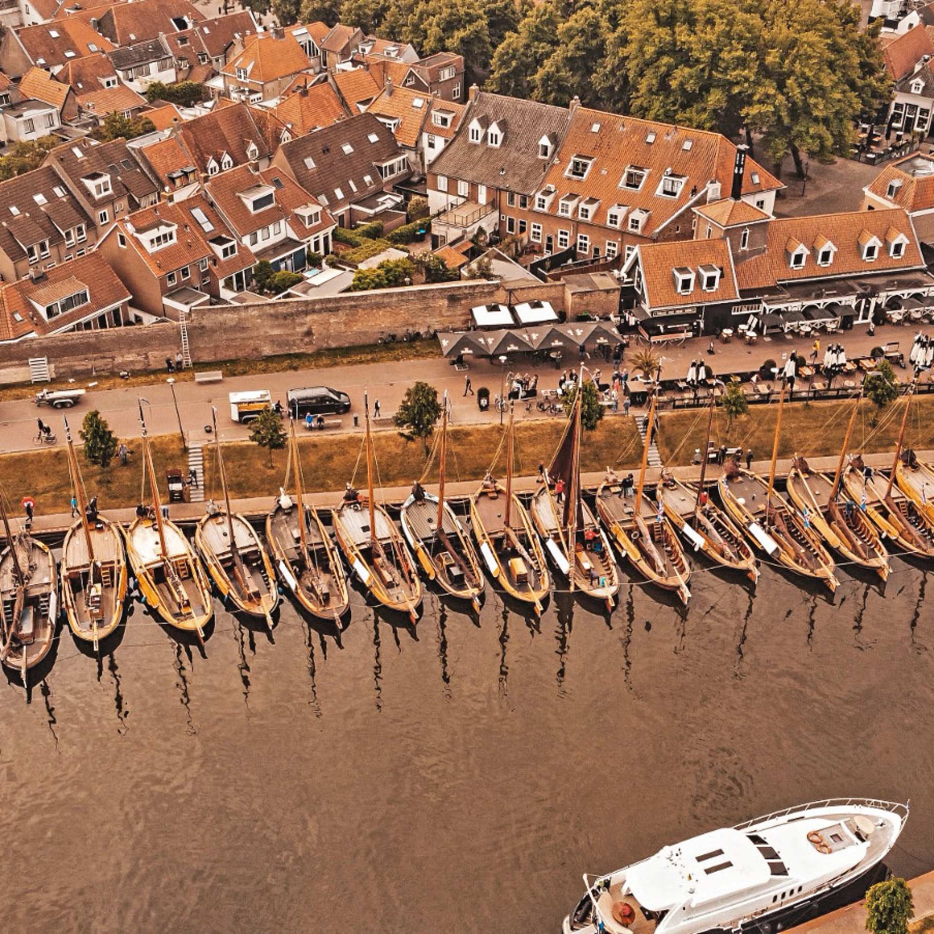 Bij aankomst in de oude vissershaven in Harderwijk wordt u opgewacht door de stadsgids. De enthousiaste en goed opgeleide gidsen staan garant voor een interessante en gezellige rondleiding door de oude veste van de stad met bezoek aan waardevolle stedelijke monumenten. Na de stadswandeling komt u samen met uw collega's of vrienden aan boord van de botters waar er koffie/thee met een lekkernij voor u klaar zal staan.